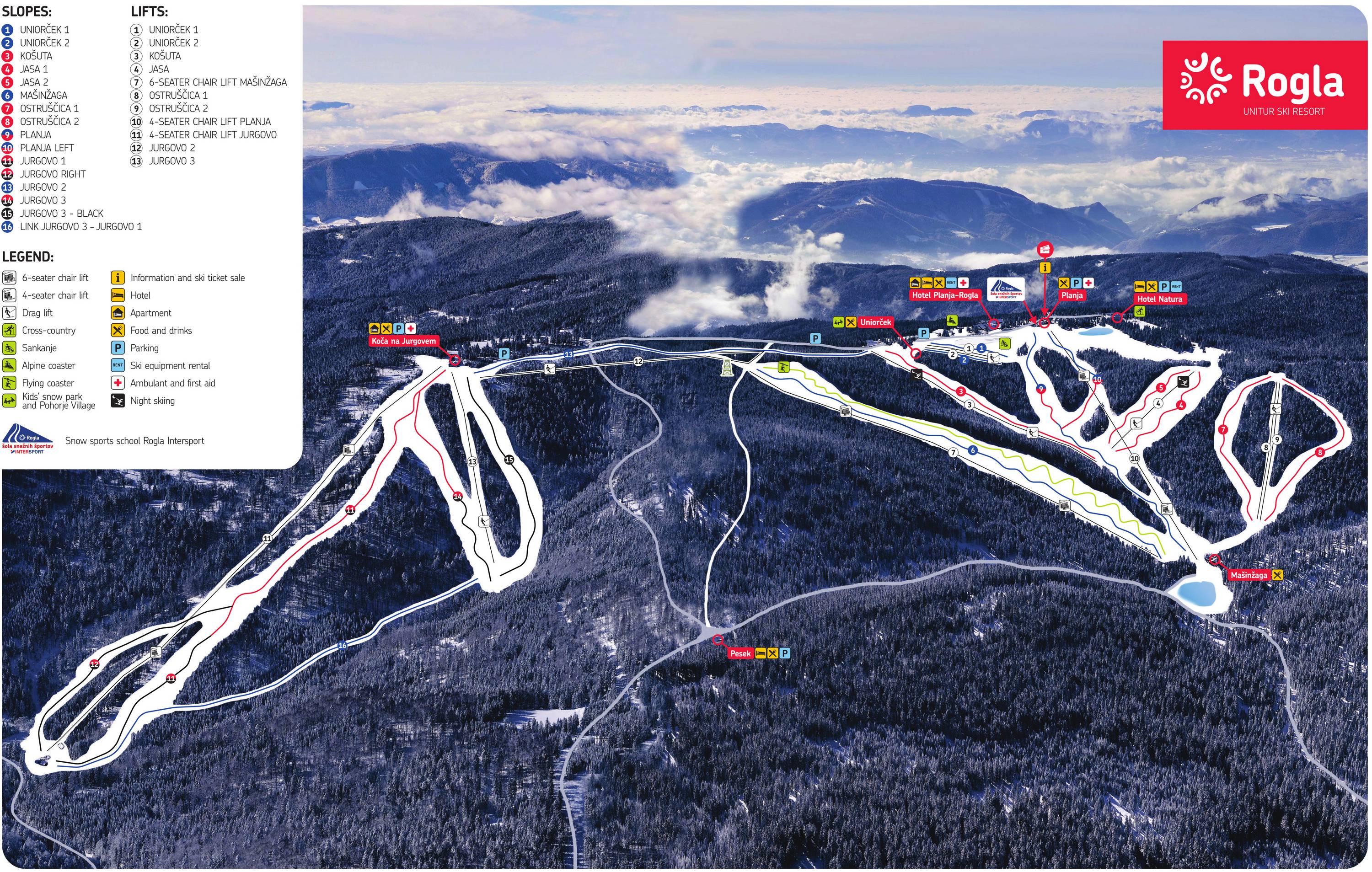 Rogla (0,1 km), Oplotnica (12 km), Zreče (16 km)