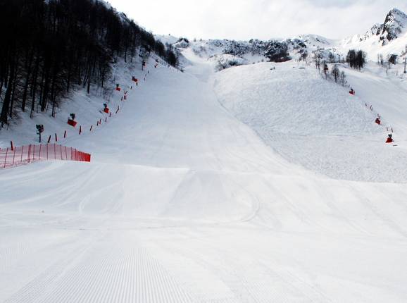 Rosa Khutor liegt zwar unweit der palmengesäumten Strände des Schwarzen Meeres, doch dieses Gewässer sorgt auch für reichlich Niederschlag, der hier im Winter in der Regel als Schnee fällt. Die leistungsstarke Beschneiungsanlage (pro Stunde können 3.000 Kubikmeter Schnee erzeugt werden, an vielen Pisten stehen links und rechts Schneekanonen) und die Höhenlage von bis zu 2320 Meter tun das Übrige (68% der Pisten liegen oberhalb 1500 Meter). In der Regel läuft der Skibetrieb bis Anfang Mai. Dann wird noch bis Besedka (1350 Meter) oder bis Rosa (1600 Meter) abgefahren.