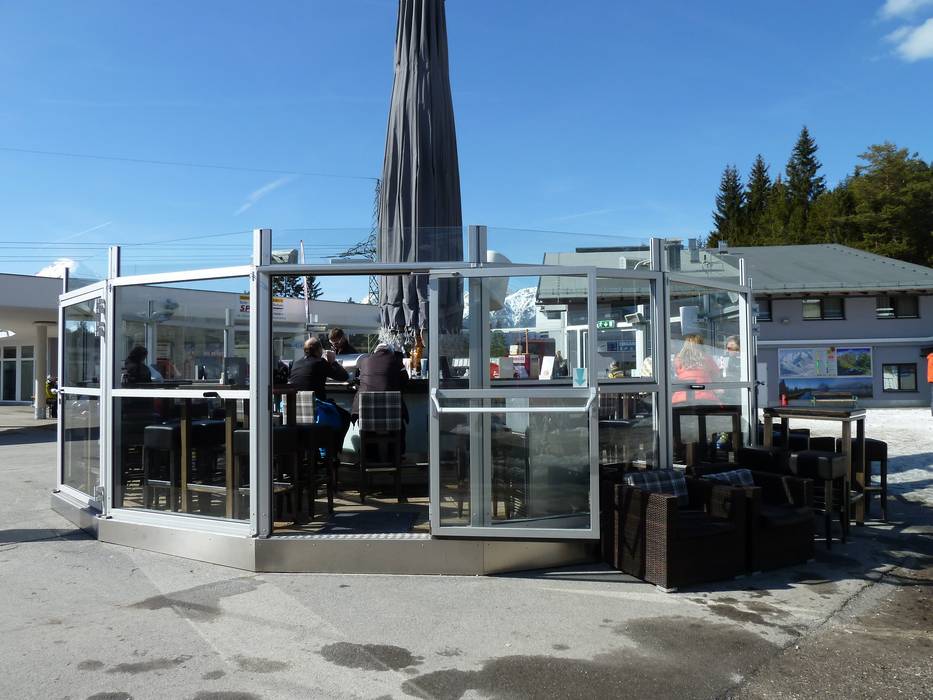 Die Schirmbar befindet sich zentral an der Talstation zwischen Kasse, Bahn, Skiverleih und Parkhaus - hier kommen alle vorbei. Ideal für einen Abschluss des Skitages.