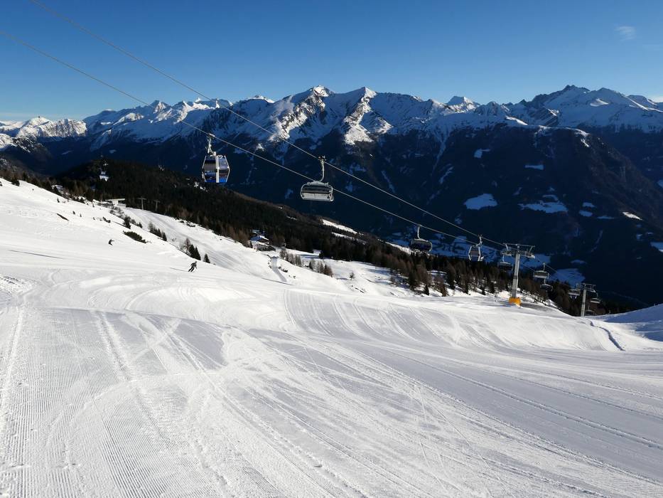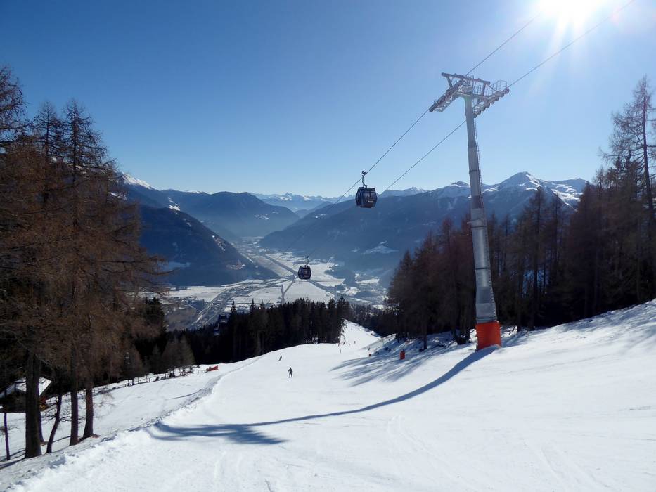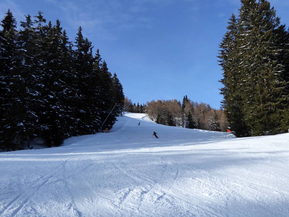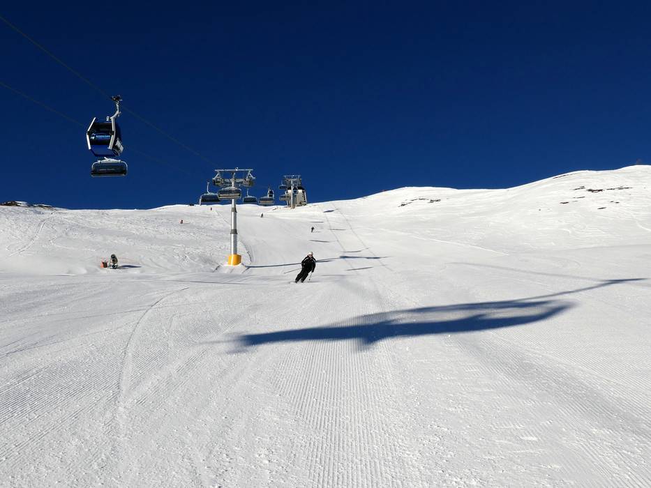 Eine beschneite Talabfahrt führt bis zur Talstation der Gondelbahn.