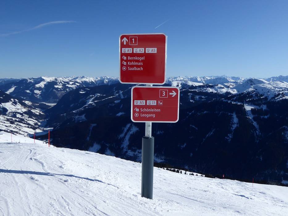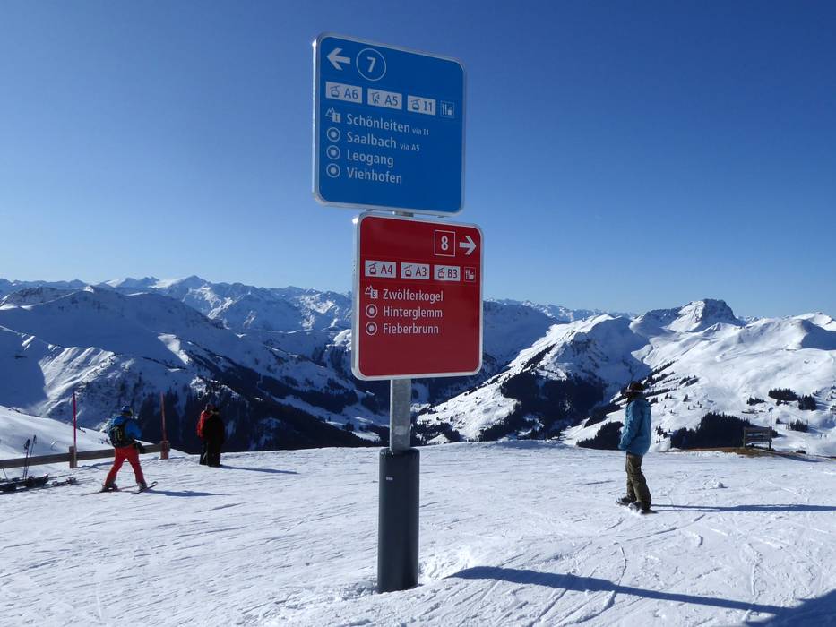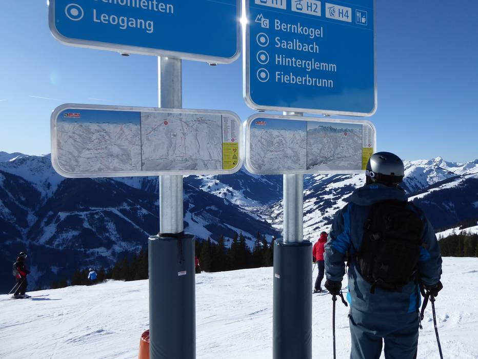 Orientierung (Pistenplan, Informationstafeln, Ausschilderung) und Sicherheit im Skigebiet Saalbach Hinterglemm Leogang Fieberbrunn (Skicircus)