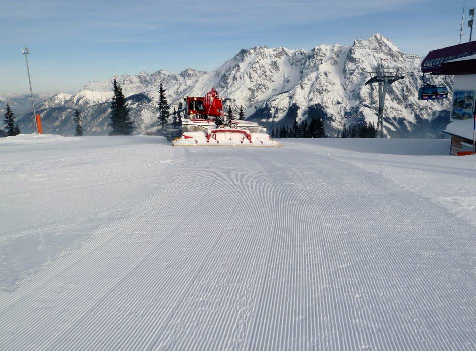Genereller Hinweis: Bei Neuschnee ist auch bei größtem Einsatz eine optimale Pistenpräparierung nicht immer möglich. Zudem kann sich der Neuschnee nicht mit der darunter liegenden Schneedecke verbinden und es entstehen schnell Buckel. Aus Sicherheitsgründen ist während des Skibetriebs meist keine Pistenpräparierung möglich.