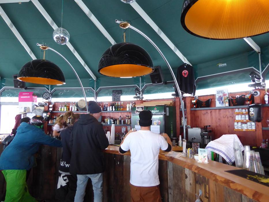 In der "Skihütte" lässt man den Skitag ganz gediegen ausklingen. Bei Fingerfood und Käsespezialitäten kann man ein Glas Wein genießen. Die Bar Lounge lädt zum Verweilen ein. Unter dem großen Schirm kann man bequem das Treiben in der Gletscherstraße beobachten.