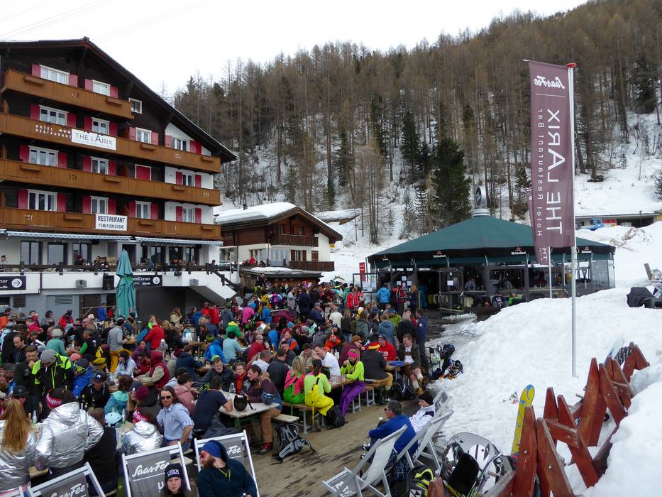 Nach einem erlebnisreichen Skitag kann man in Saas-Fee zum Après-Ski übergehen. Direkt am Fuße der Pisten wartet die Schirmbar The Larix. Auf der Partymeile von Saas-Fee in der Gletscherstraße findet man weitere Lokalitäten zum Einkehren und zum Feiern. Unter der Woche geht es etwas ruhiger zu. Am Wochenende kann das Après-Ski dann doch schon mal länger werden. Ein Highlight ist die jährliche Season-End-Party am letzten Samstag der Saison. Diese Après-Ski-Parade mit DJs, Soundanlage, Dance Contest und dem Party Mobil sollte man auf keinen Fall verpassen.