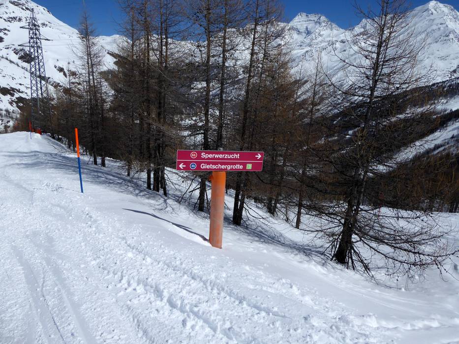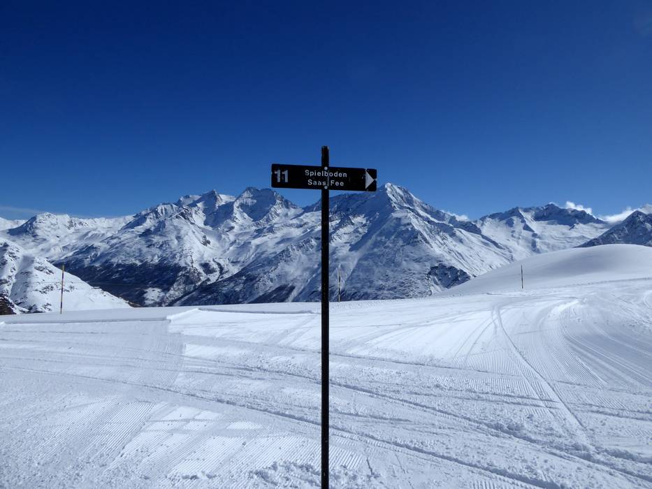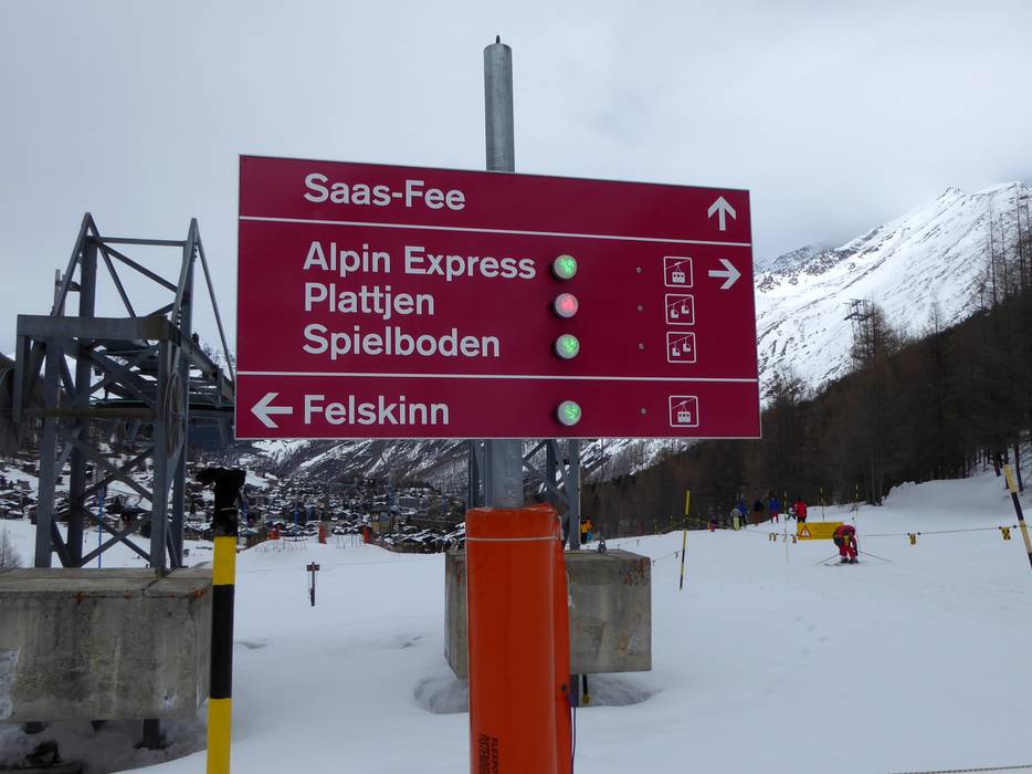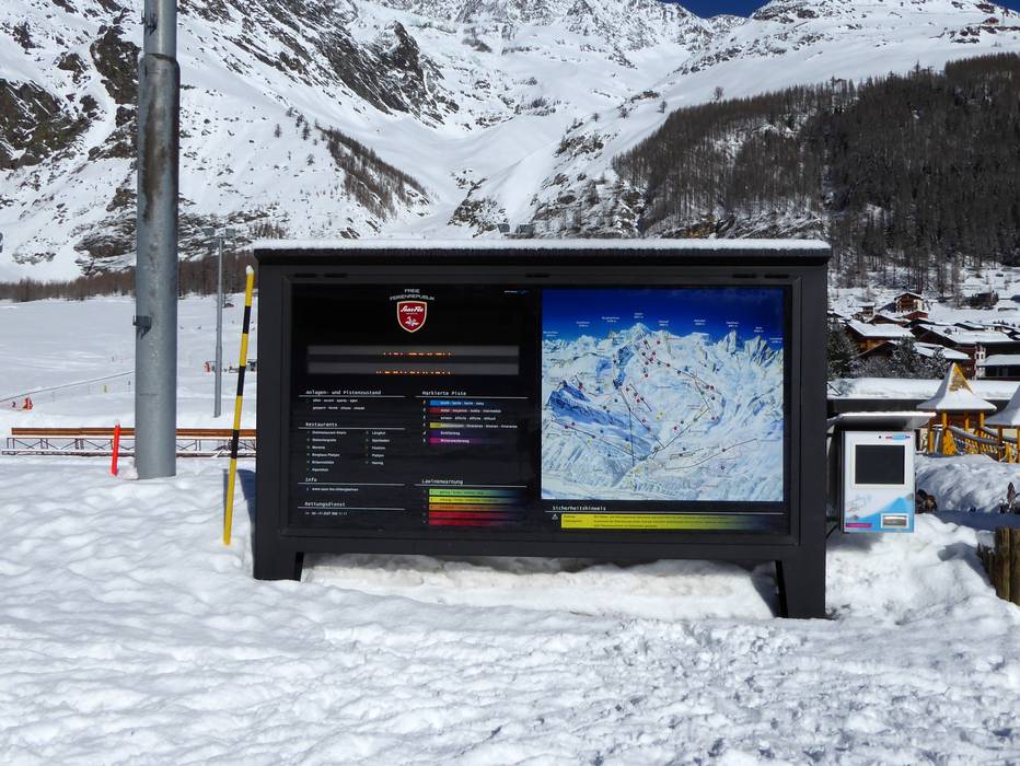 Orientierung (Pistenplan, Informationstafeln, Ausschilderung) und Sicherheit im Skigebiet Saas-Fee