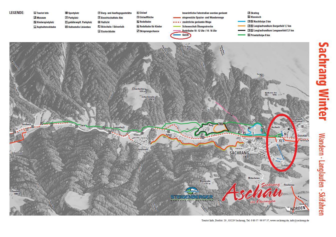 Sachrang (0,6 km), Aschau im Chiemgau (12 km) Orte am Skigebiet