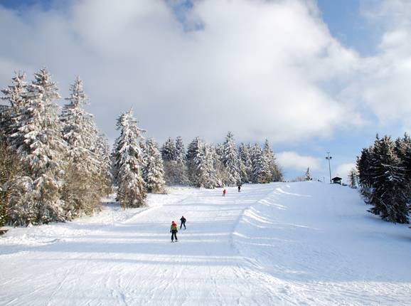 Parkplatz direkt am sanften Pistenauslauf, Skiverleih, Skischulanmeldung, Hütte und Lift auf einem Fleck, eigener Übungslift, absolut angstfreie Topografie. Auch weil man am Sahnehang eine spezielle Kurzski-Lehrmethode anwendet und Anfängern garantiert, dass sie bereits nach einer halben Stunde liften können.