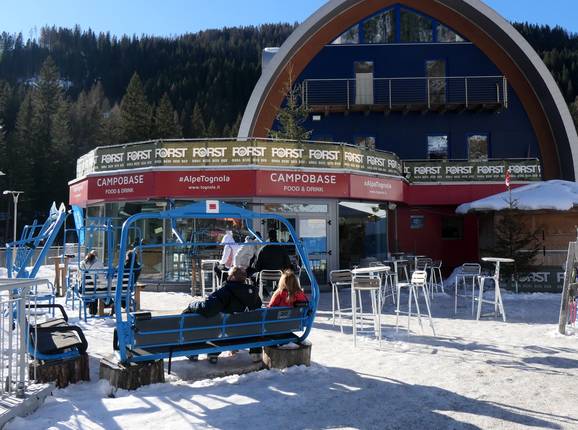 Die Tognola Campo Base ist die Après-Ski Lokalität in San Martino di Castrozza mit Bar und guter Musik. Hier kann man täglich nach dem Skifahren oder Snowboarden zum Après-Ski übergehen.