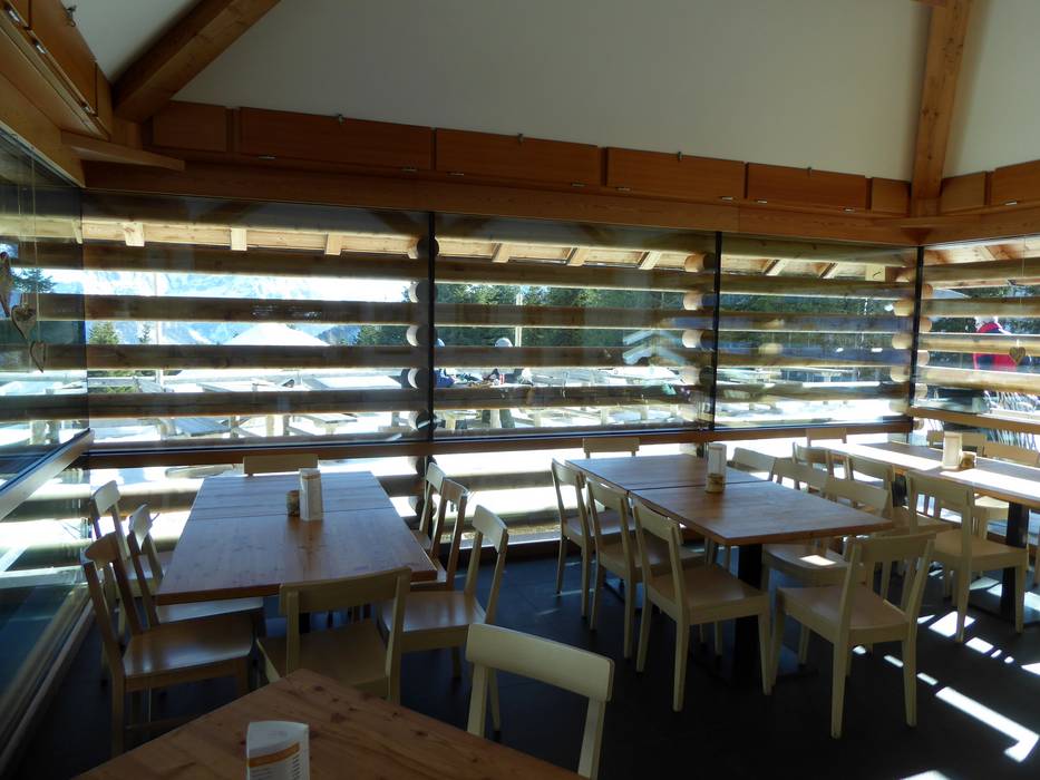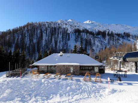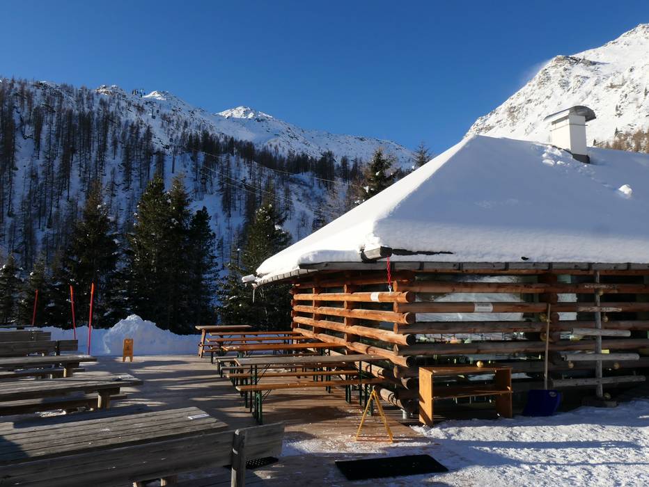 Die modernisierte Hütte hat von außen ihren alten Stil bewahrt. Auf der Sonnenterrasse und im Inneren kann man hier Spezialitäten aus der Region genießen. Sehr zu empfehlen sind die hausgemachten Panini.