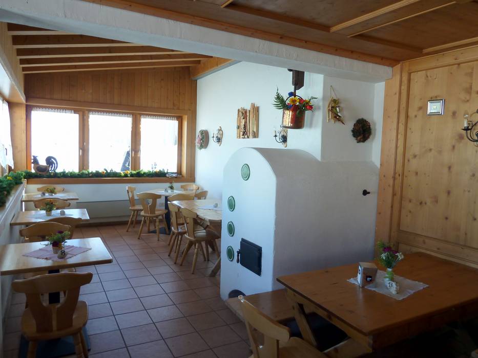 Die Malga Tognola bietet eine gemütliche Stube mit Kachelofen und eine große Sonnenterrasse. Highlights sind die hausgemachten Kuchen und Desserts.