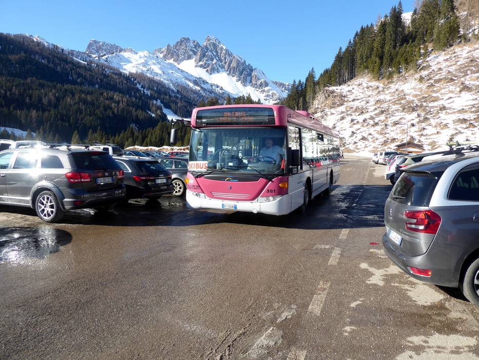 - San Martino di Castrozza bietet ein Skibussystem innerhalb des Ortes und bis hinauf zum Rollepass.