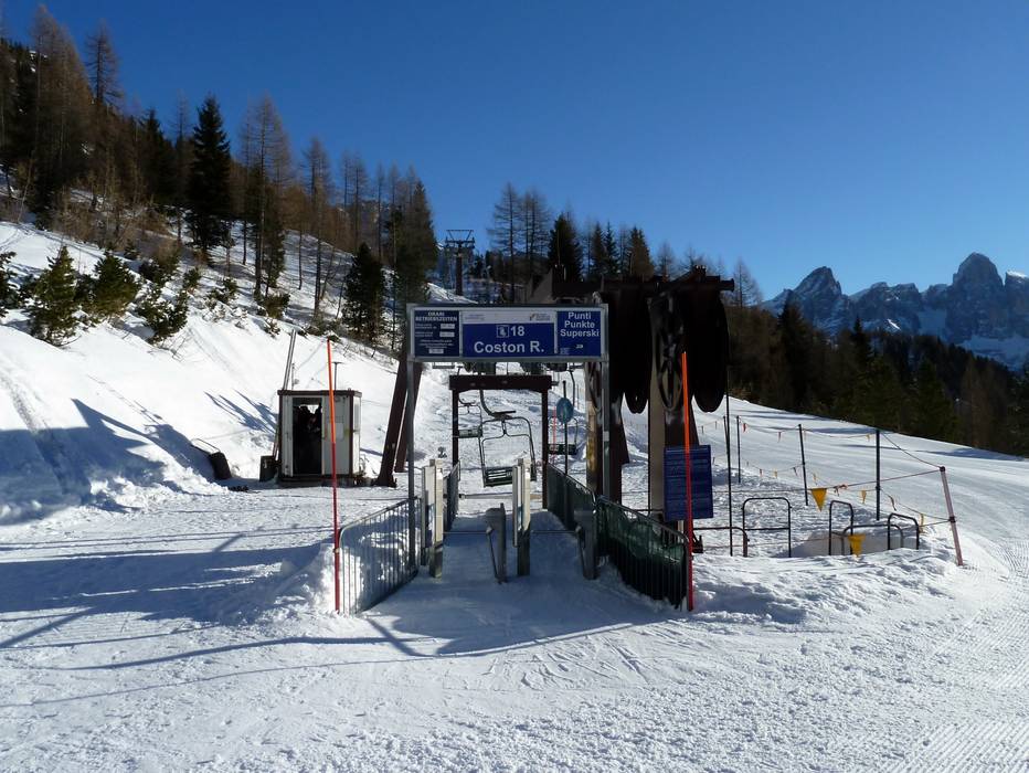 Auf der anderen Seite vom Ort startet eine Achtergondelbahn hinauf zum Col Verde und erschließt hier ebenfalls Pisten. Mit der Seilbahn (ohne Ski) geht es zum lohnenden Aussichtsberg Rosetta.