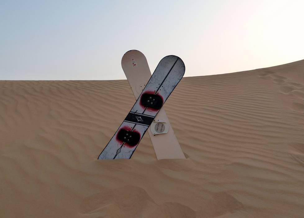 Vor den Toren der Stadt Dubai beginnt gleich die Sandwüste. Dort gibt es viele Möglichkeiten seine Freizeit zu verbringen und den ein oder anderen Sport nachzugehen. Sehr zu empfehlen ist das Sandboarding. Mit einem Jeep fährt man zu den Camps wo das Sandboarding angeboten wird.