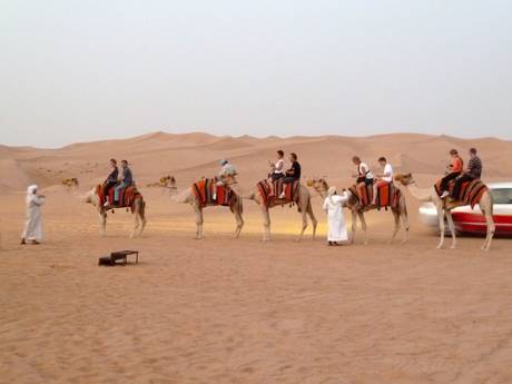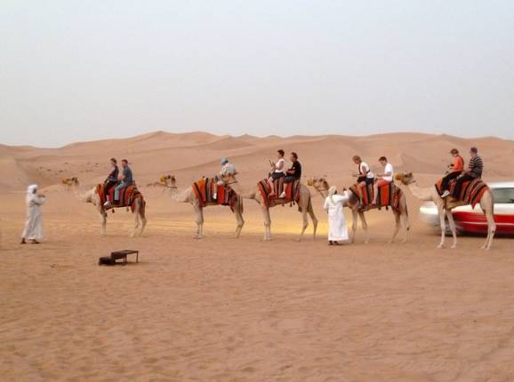 In der Wüste bei den Camps wird Kamelreiten mit angeboten. Das ist ein ungefährlicher Spaß für die ganze Familie.