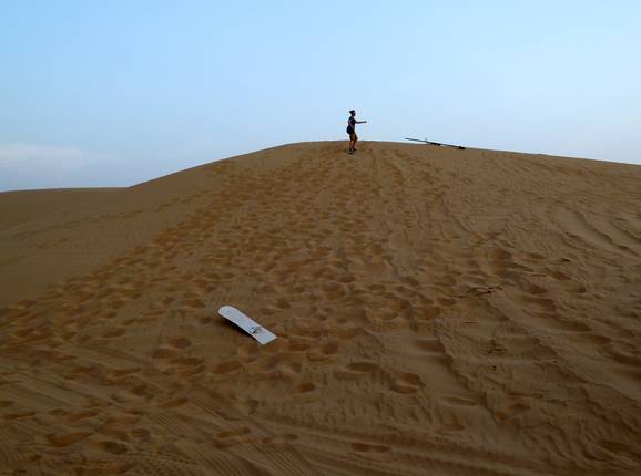 Es gibt nur "mittelschwere" Abfahrten. Ist es zu leicht, rutscht man nicht. Ist es zu steil, würde der Sand nach unten rutschen.