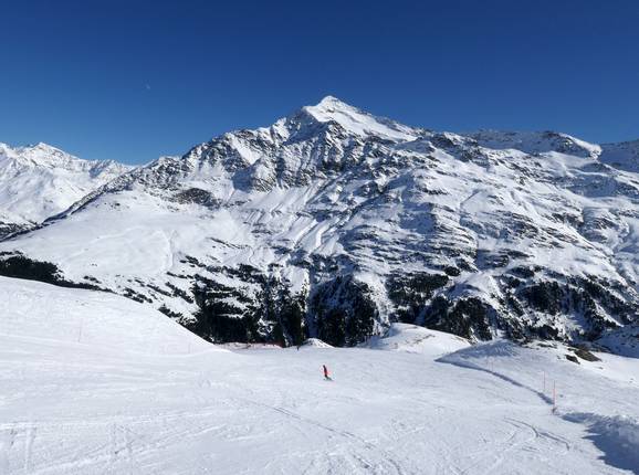 Traumhafte Piste vom Valle dell'Alpe in Richtung Santa Caterina. Der Blick auf den Pizzo Tresero (3594 m) ist beeindruckend. - Vallalpe