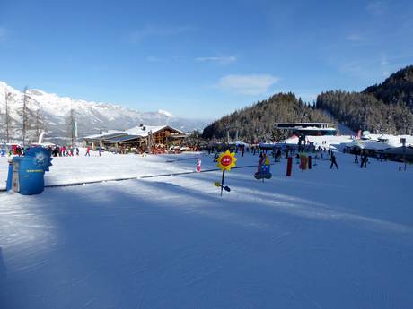 Direkt an der Bergstation des Silver-Jet liegt das sonnige Kinderland Regenbogenalm. Hier begeistern mehrere Förderbänder (z.T. überdacht), Kinderkarussell, Spielfiguren und eine Wellenbahn die kleinsten Skifahrer. Für stolze Eltern bietet sich die Sonnenterrasse der Lena Alm zum Zuschauen an. Das Kinderland ist auch für Nichtskifahrer bestens erreichbar.