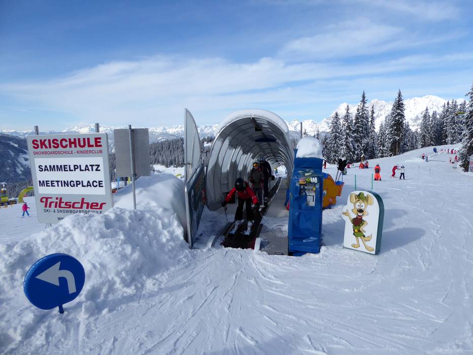 Am Hopsilift in Rohrmoos betreibt die Skischule Hopl ein Kinderland mit einem Förderband. Sind die ersten Rutschversuche erfolgreich absolviert, kann direkt am angrenzenden Tellerlift weiter geübt werden.