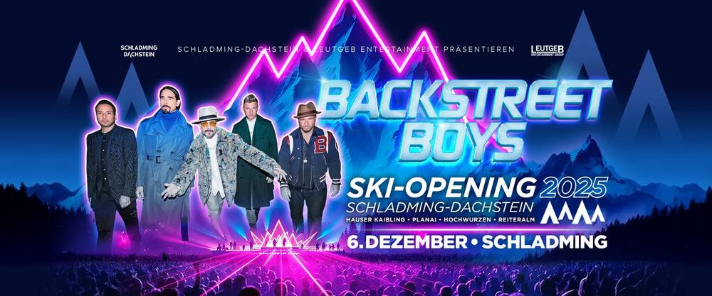 Die Backstreet Boys begeistern seit den 1990er Jahren Fans weltweit mit zeitlosen Hits wie „I Want It That Way“, „Everybody (Backstreet's Back)“, „As Long As You Love Me“und „Quit Playing Games (With My Heart)“. Neben diesen Klassikern dürfen sich Fans beim Ski Opening 2025 in Schladming-Dachstein auch auf neues Material freuen: Am 11. Juli erscheint ihr Jubiläumsalbum Millennium 2.0, eine Neuauflage ihres Albums Millennium aus dem Jahr 1999.