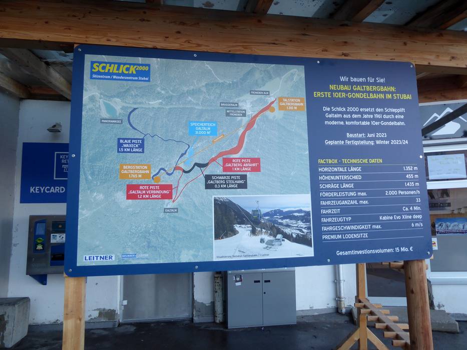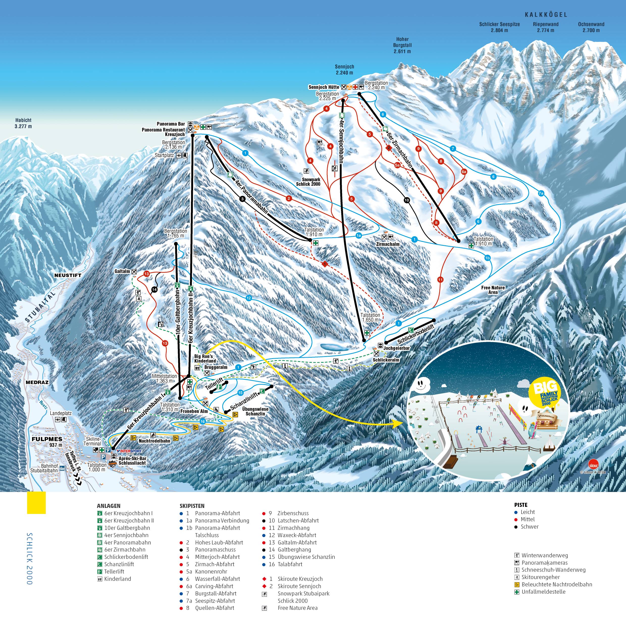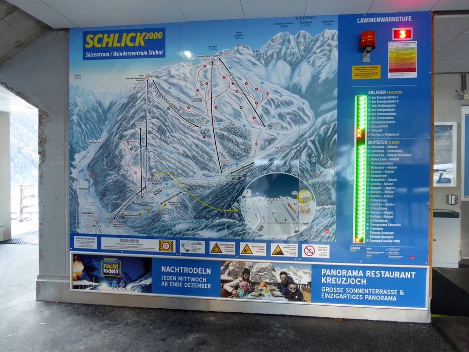 Orientierung (Pistenplan, Informationstafeln, Ausschilderung) und Sicherheit im Skigebiet Schlick 2000 – Fulpmes