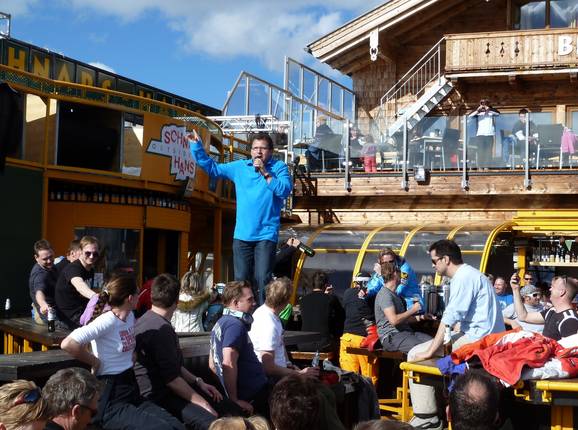 Der legendäre Schnaps-Hans sorgt für gute Laune und Stimmung. Auf der Sonnenterrasse oder im urigem Hüttenambiente auf zwei Etagen feiert man ab dem frühem Nachmittag mit DJ.