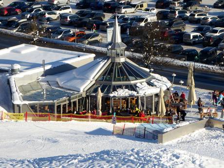 Das Turmsalettl mit zu öffnenden Dach ist ideal für den Abschluss des Skitages in Schüttdorf. Der Küchenchef kann innen bis zu 120 Personen verwöhnen. Die Cabrio Bar ist ein beliebter Après-Ski-Treff.