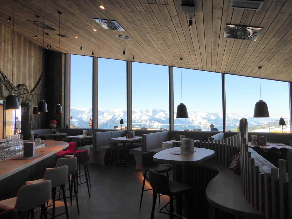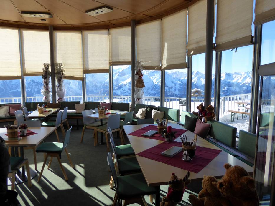 Im Panorama Restaurant bei der Bergstation der Areitbahn III auf 1900 m