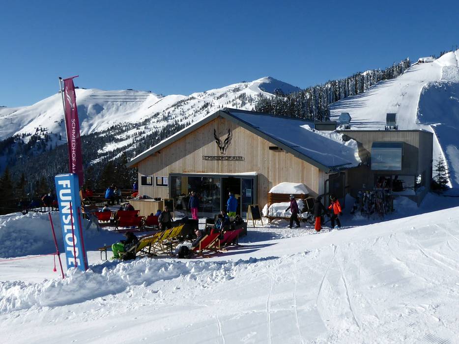 Urige, gemütliche Skihütte auf der Schmittenhöhe mit Schirmbar und großer Sonnenterrasse sowie heimischen Spezialitäten