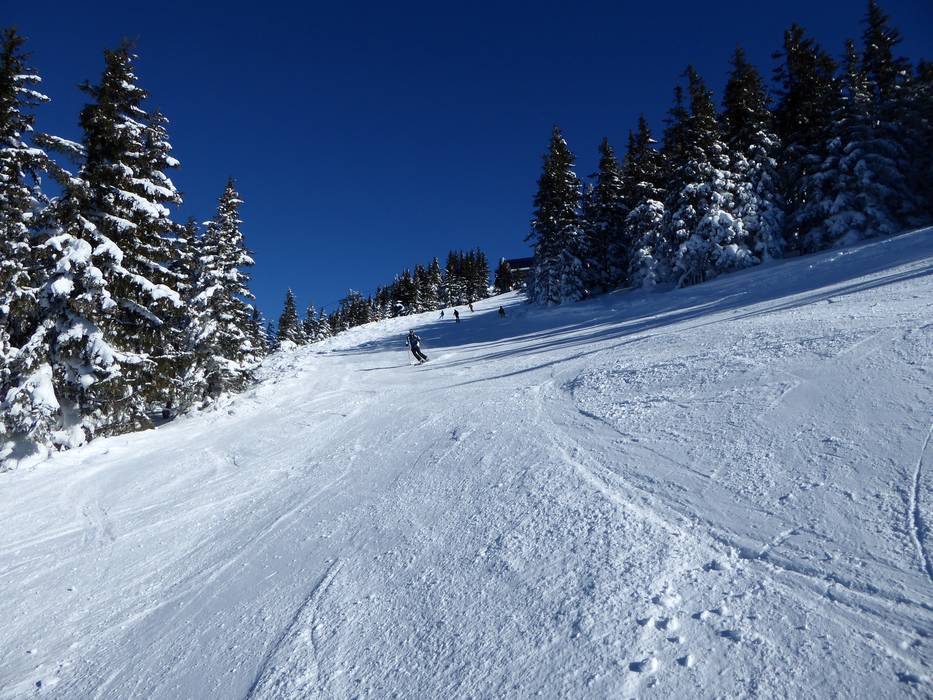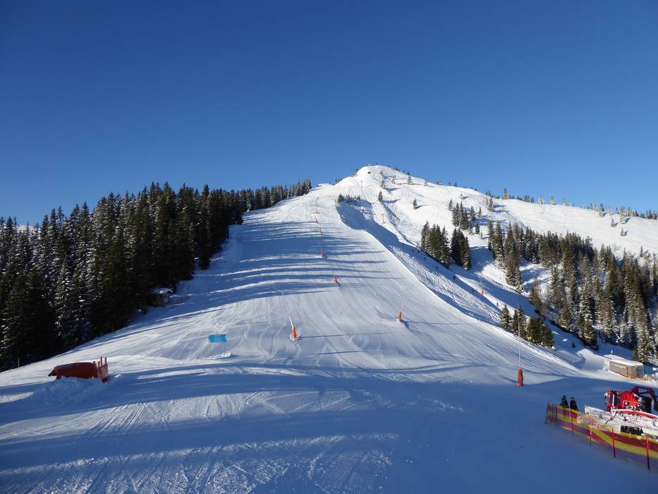 Die Abfahrt führt von der Schmittenhöhe entlang der Areitbahn Sektion 1 bis 3.