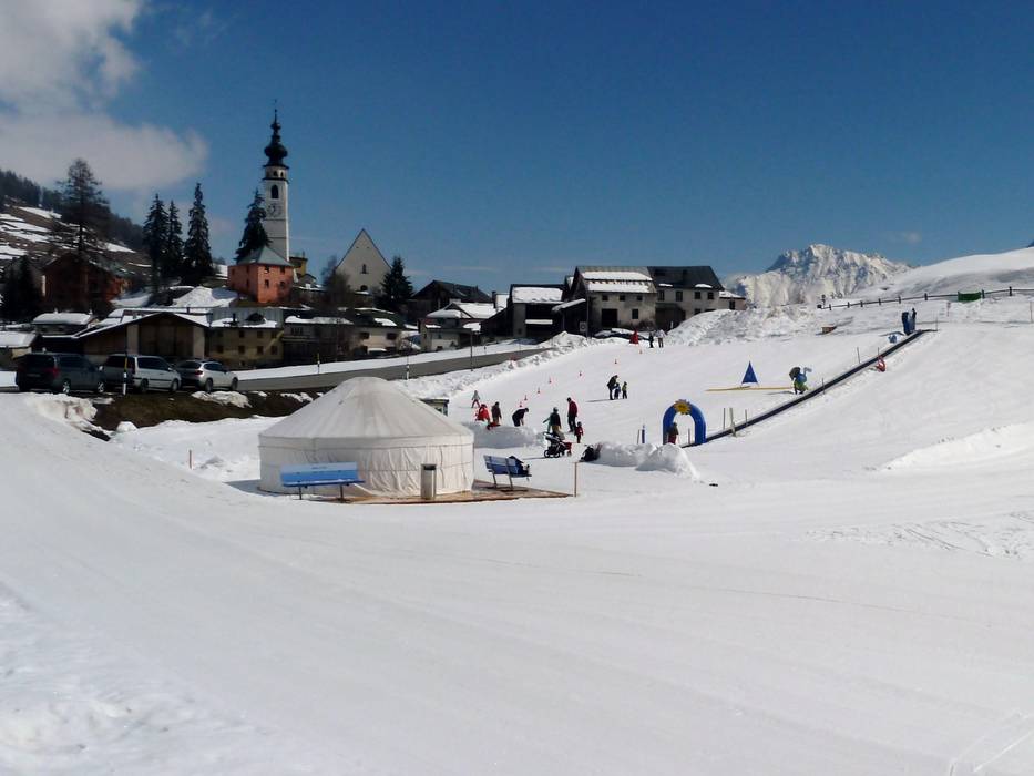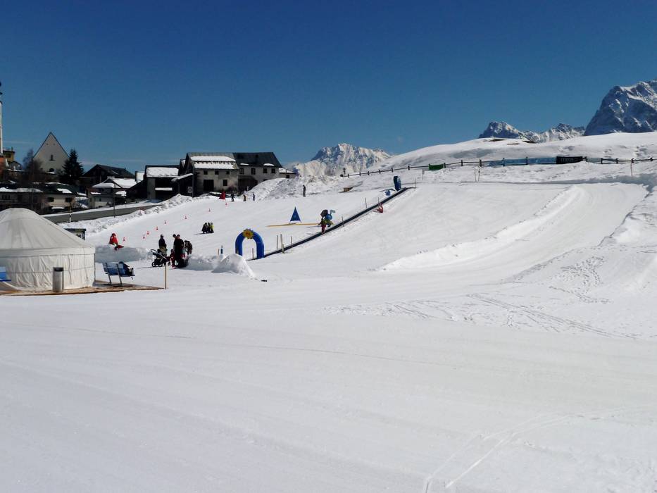 Im Snowpark begeistern viele Elemente für Familien wie Schnecke, Tunnel, Wellenbahn, Abklatschfiguren und kleinere Obstacles.