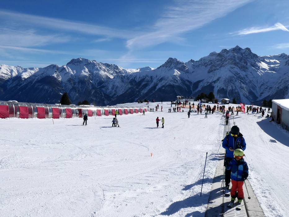 Am Ortsrand von Ftan befindet sich noch ein weiteres Kinderland. Hier betreut die Skischule Scuol-Ftan Kinder ab 4 Jahren. Das Gelände ist ideal für die Kleinen und wird von einem Förderband erschlossen.