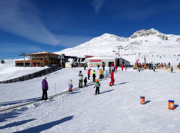 Das große und sonnige Kinderland und Anfängerareal liegt direkt neben der Bergstation der Zubringerbahn von Scuol (Motta Naluns). Es bietet drei Förderbänder, wovon eines überdacht ist (110m), sowie Animationspisten und Tunnels. Ski- und Snowboardschulen stehen bereit.
