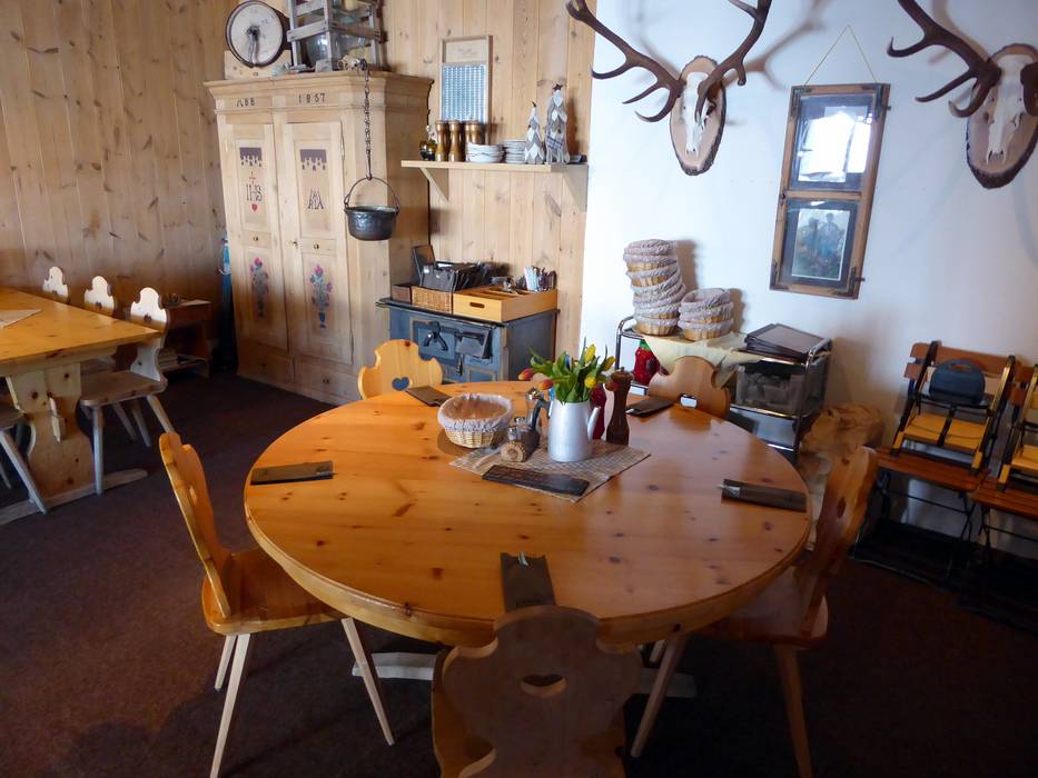 Typisches Bergrestaurant mit Menüs, à la Carte und großer Sternenbar auf der Sonnenterrasse. Im rustikalen Fonduestübli werden verschiedene Fondues serviert.