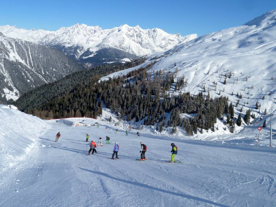 Eine komplett beschneite Talabfahrt führt bis zur Talstation in See.
