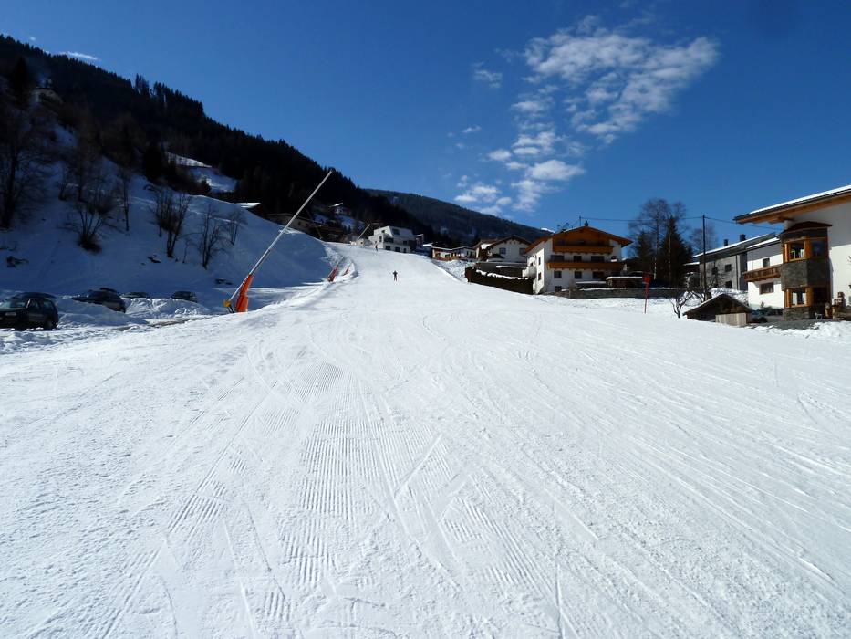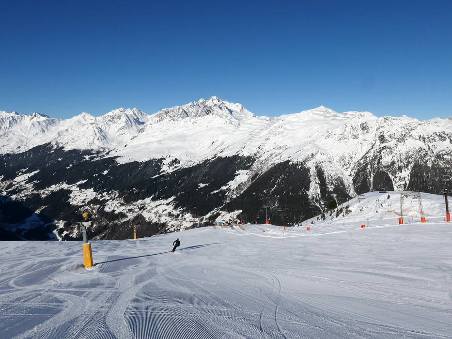 Die Piste führt ohne Unterbrechung von der Bergstation der Furglerblickbahn bis zur Talstation in See.