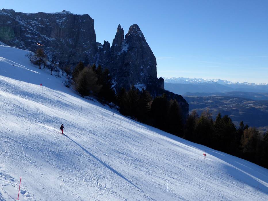 Das herrliche Panorama auf den Pisten inmitten der Dolomiten (UNESCO Weltnaturerbe) macht das Skifahren hier in Südtirol zum Erlebnis. Die Seiser Alm ist mit 2.600 Hektar die größte zusammenhängende Hochfläche Europas und sie ist sehr sonnenverwöhnt. Schwerpunktmäßig gibt es leichte bis mittelschwere Abfahrten. Einige schwarze Abfahrten wie z.B. an der Kombibahn am Puflatsch ergänzen das Angebot. Die Pisten sind sehr beliebt bei Familien und Genussskifahrern.