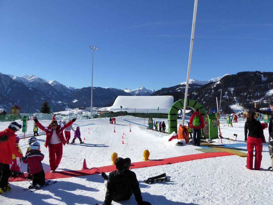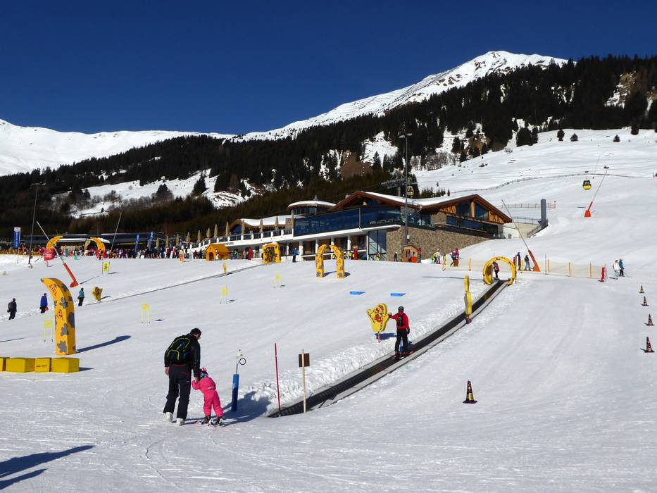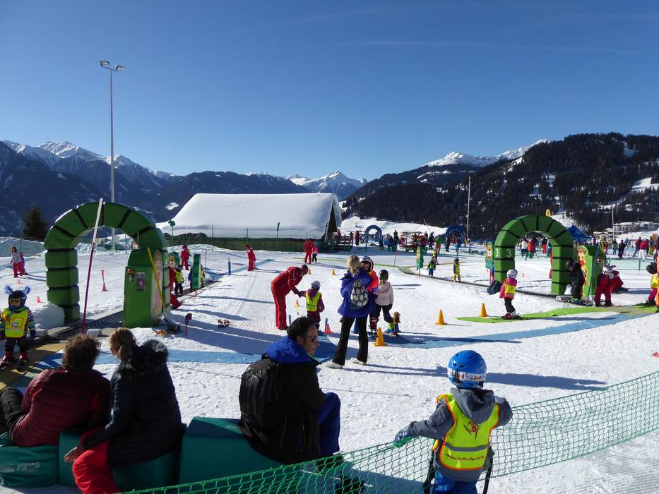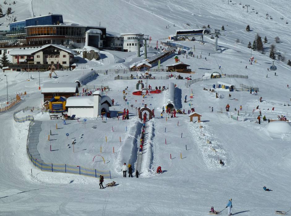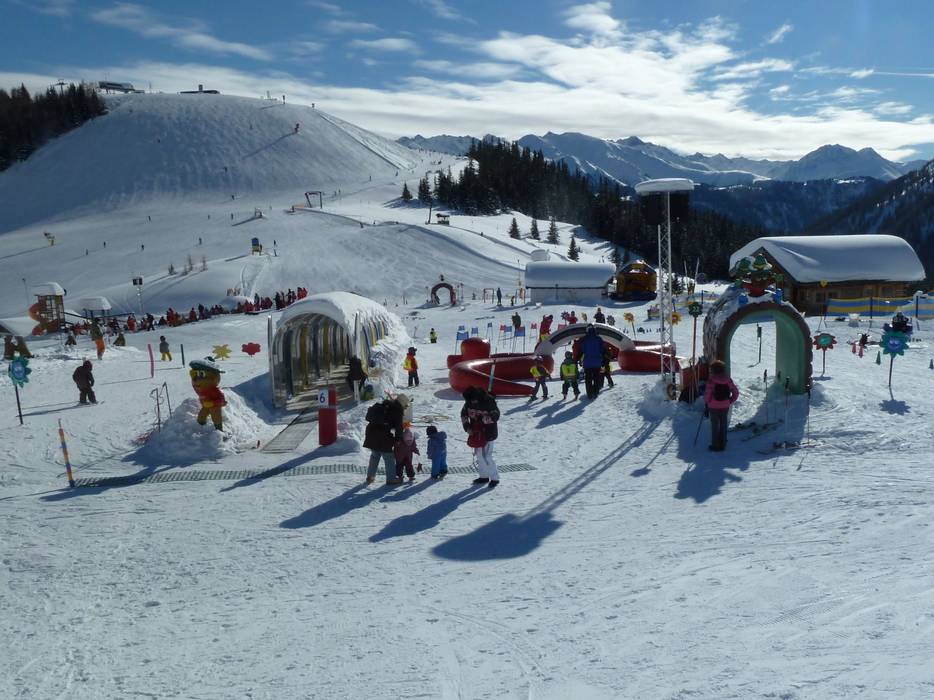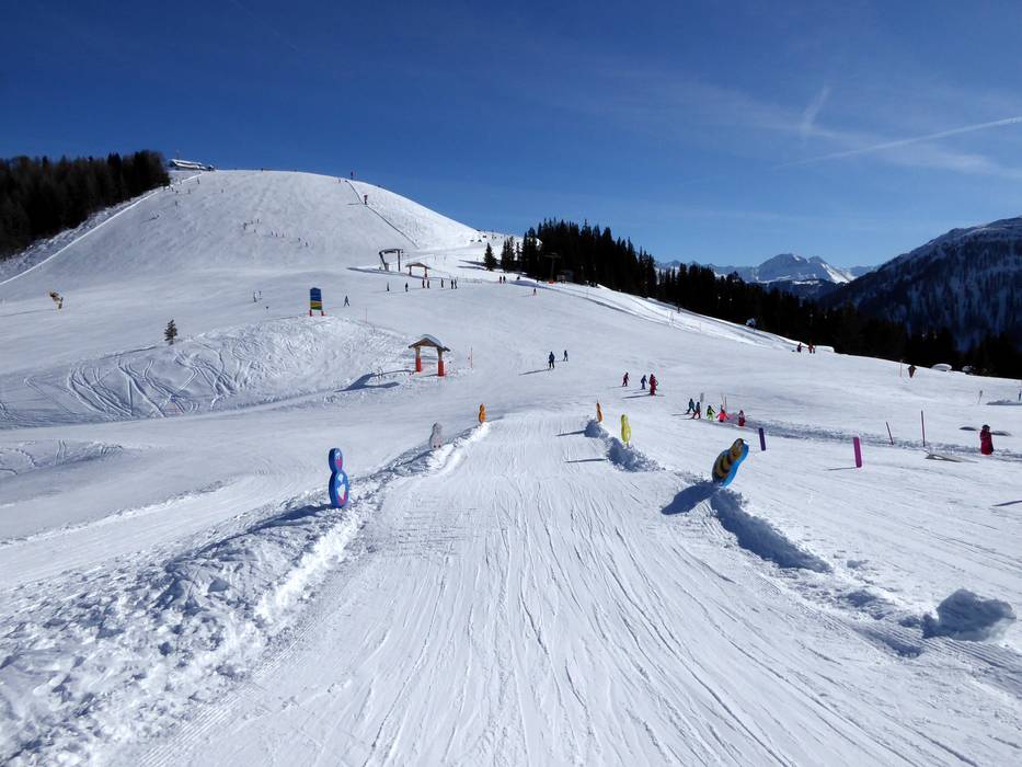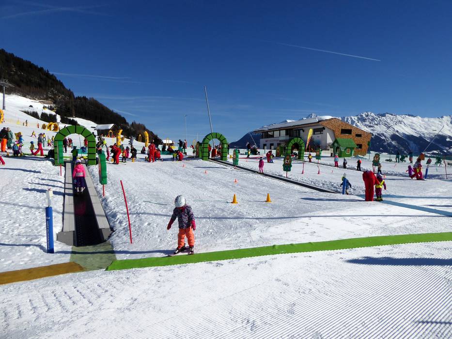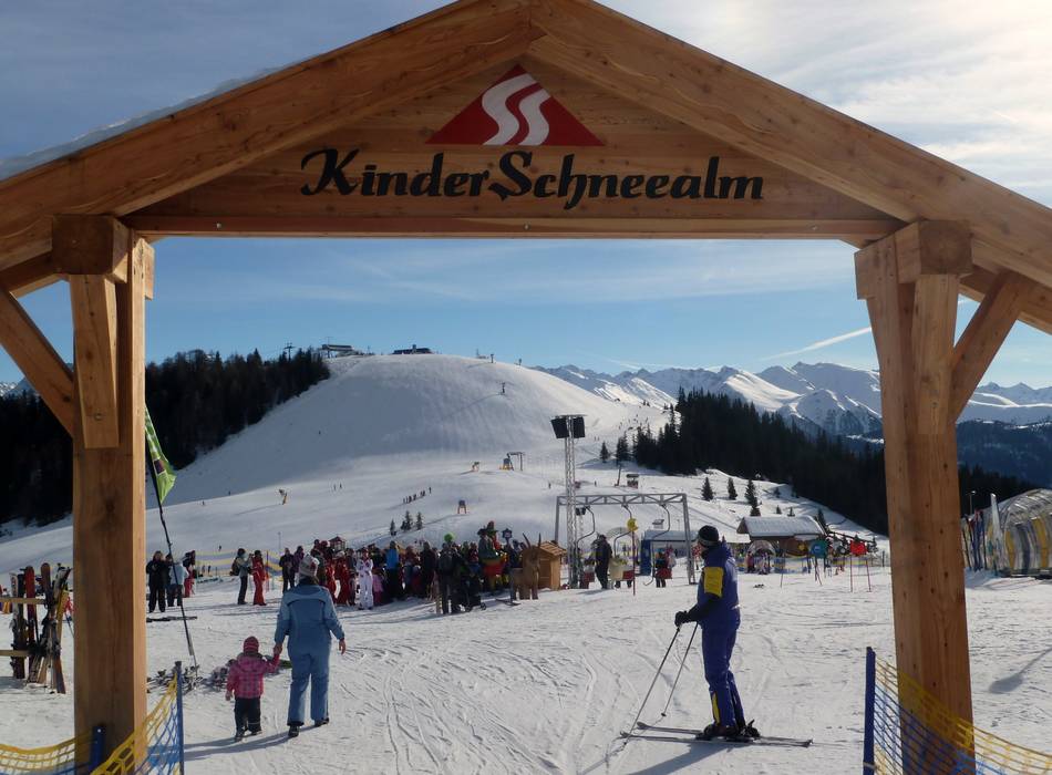 Die Kinderschneealm befindet sich direkt am Komperdell. Ein perfektes Areal für die Kleinen und wer schon sicher auf den Ski steht kann die Bärenpiste fahren oder mit der kindergesicherten Familienbahn Gampen bergwärts schweben.