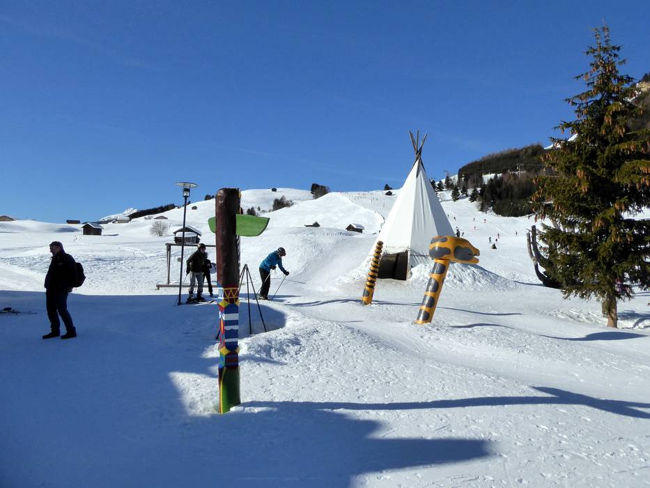 Das Indianerland befindet sich an der Ladisabfahrt. Indianerzelt, Marterpfahl und Kanu erwarten die Kleinen.