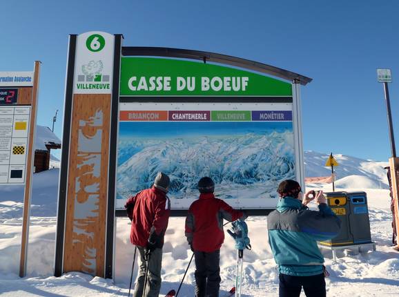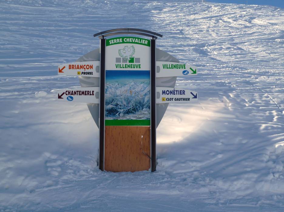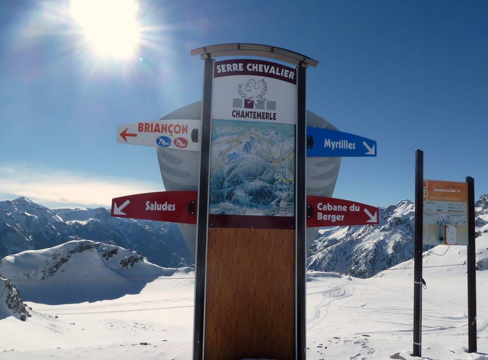 Orientierung (Pistenplan, Informationstafeln, Ausschilderung) und Sicherheit im Skigebiet Serre Chevalier – Briançon/Chantemerle/Villeneuve-la-Salle/Le Monêtier-les-Bains