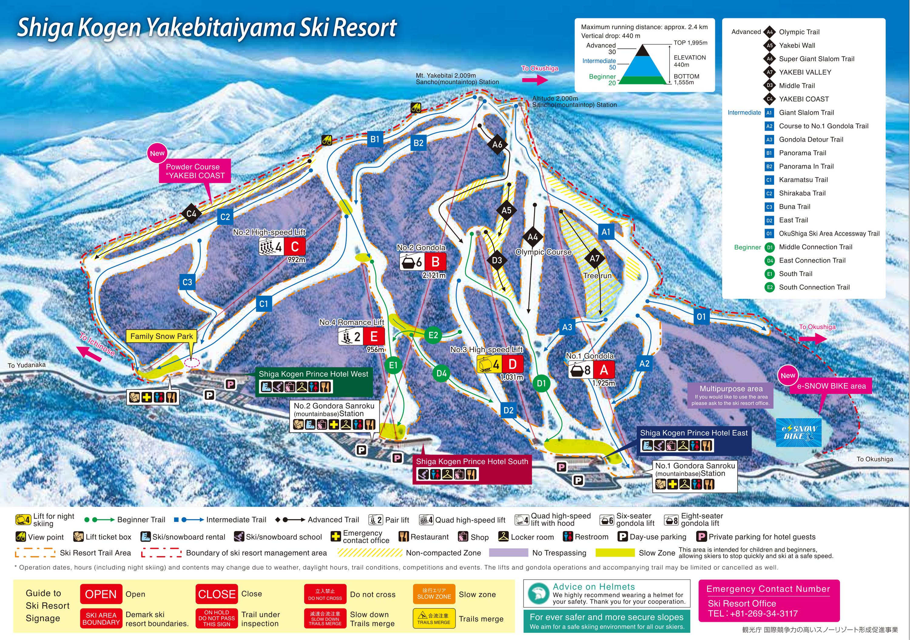 Pistenplan Shiga Kogen Mountain Resort Saison 2025/2026