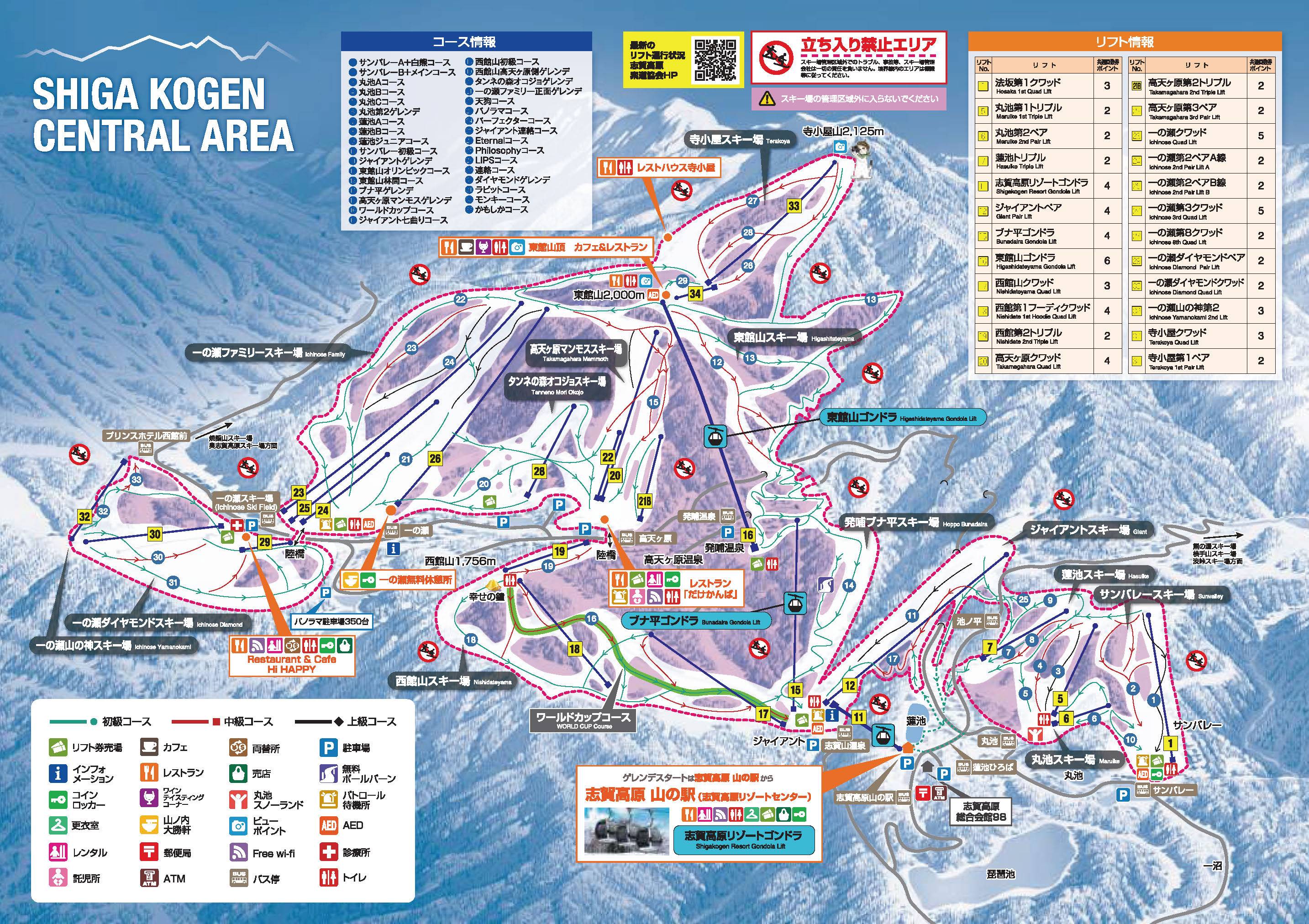 Pistenplan Shiga Kogen Central Area Saison 2025/2026