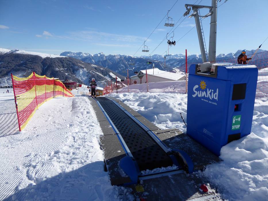 An der Bergstation der Gondelbahn befindet sich das Kinderland der Wintersportschule Hochpustertal. Hier können die Kleinen die ersten Schwünge in sonniger Lage erlernen. Das Förderband ist exklusiv für die Skischule reserviert.