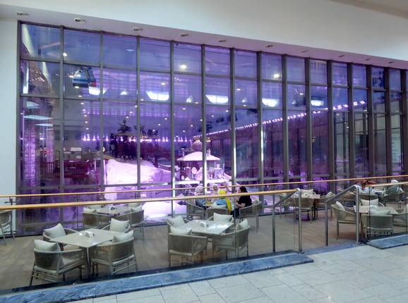 Die Skihalle Ski Egypt bietet ein gemütliches Après-Ski mit Blick auf die Pisten. Hier kann man nach dem Skifahren oder Snowboarden einen Drink zu sich nehmen.