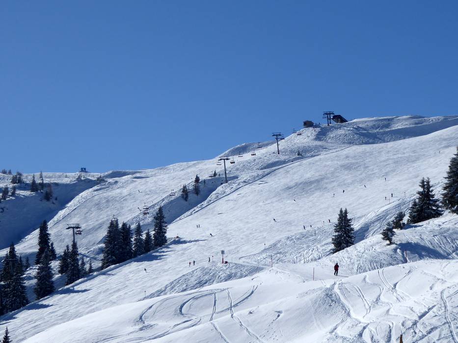 Start am höchsten Punkt im Skigebiet beim Top of Alpbachtal entlang der 6er-Sesselbahn Hornbahn 2000 - Schatzberg Abfahrt bis ins Tal nach Auffach