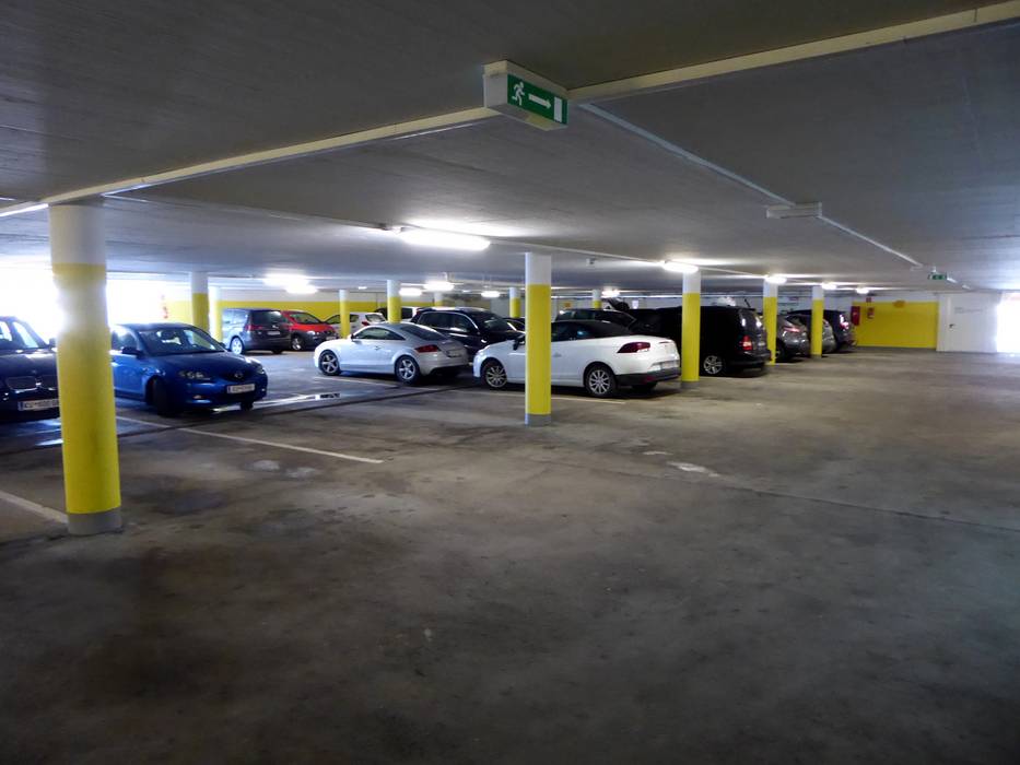 • meist ausreichend vorhanden, Tiefgarage, Parkhaus, asphaltierter Platz