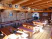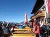 Urige Hütte mit Bar und Sonnenterrasse. Am Nachmittag geht man dann zum Après-Ski über.