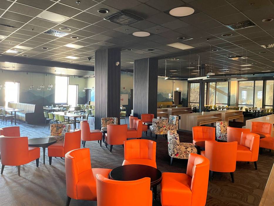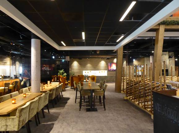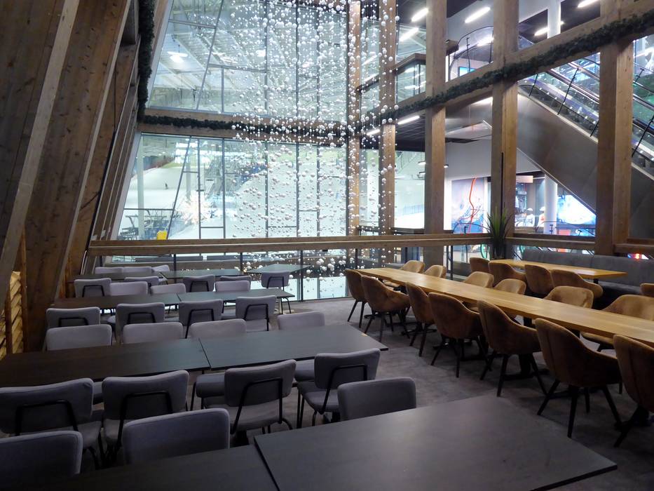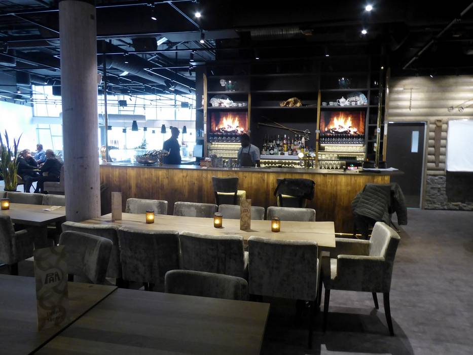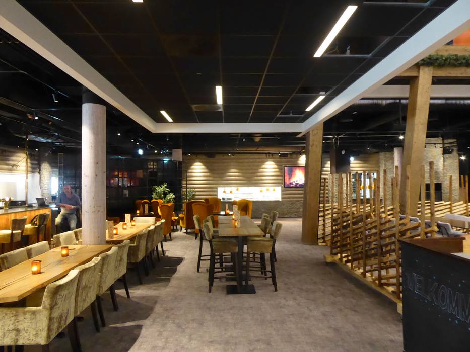 Der Gastropub und die Sportsbar bieten eine entspannte Atmosphäre mit Blick in die Skihalle. Es wird eine gute Auswahl an Speisen und Getränken serviert.