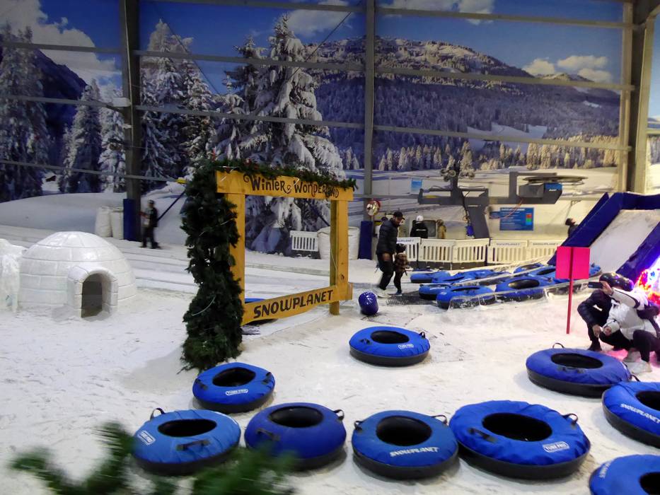 Das Winter Wonderland ist ein familienfreundliches Alpendorf mit schneebedeckten Bäumen und Aktivitäten, wie Rodelbahn und Snowtubing. Es ist ein Spaß für die ganze Familie und befindet sich im unteren Bereich der Skihalle.