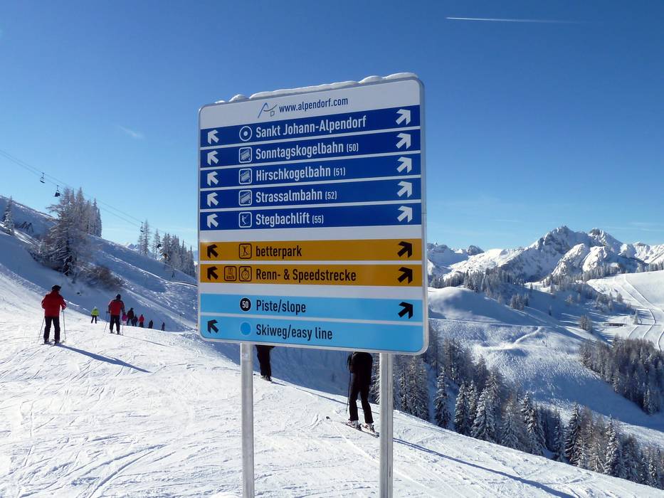 Orientierung (Pistenplan, Informationstafeln, Ausschilderung) und Sicherheit im Skigebiet Snow Space Salzburg – Flachau/​Wagrain/​St. Johann-Alpendorf