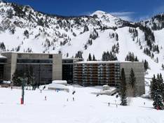 Skigebiet Snowbird im Little Cottonwood… Blick vom Hidden Peak in den Ballungsraum rund um… Skigebiet Snowbird mit Aerial Tram